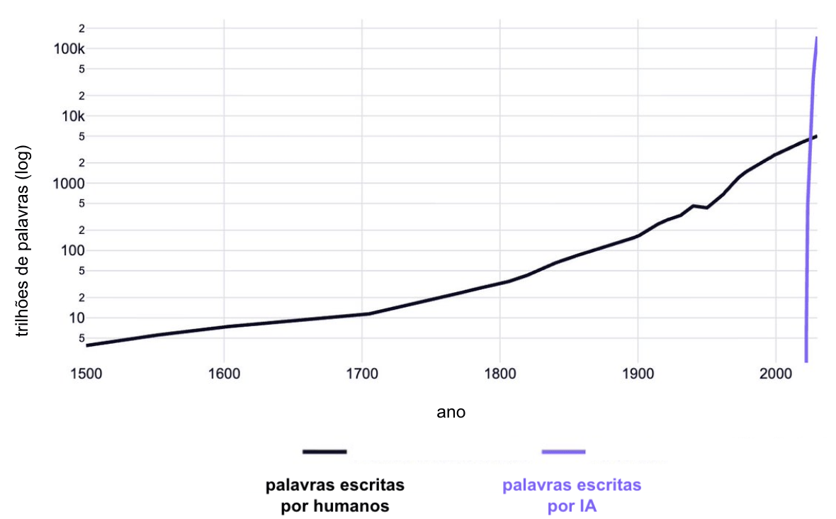 Comparando a produção humana de texto ao longo de 500 anos com a produção da IA