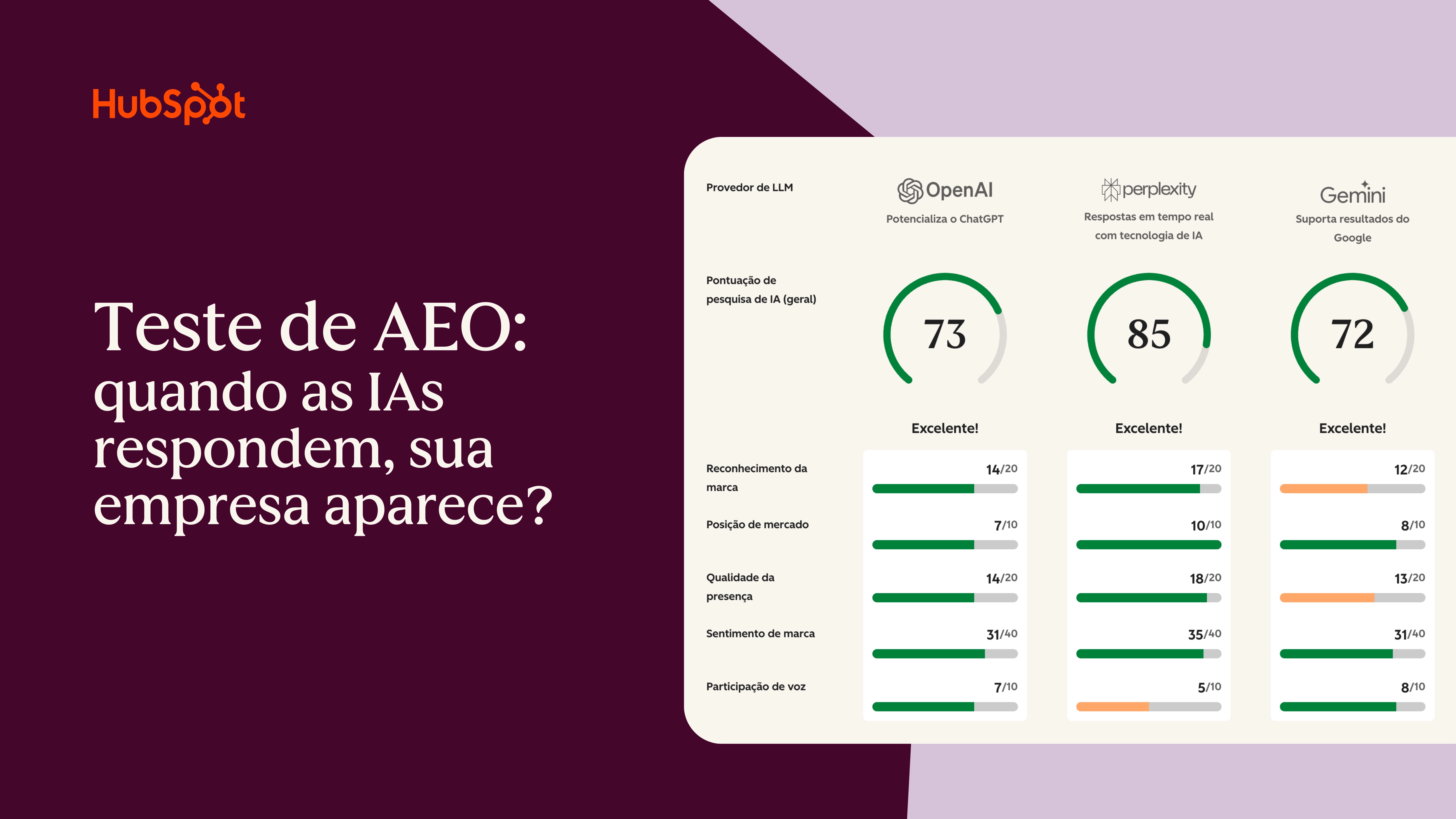 O novo critério de autoridade não é mais domínio, é legibilidade. A HubSpot lançou um Diagnóstico AEO pra mostrar onde você aparece — ou some. Faça o diagnóstico gratuito aqui.