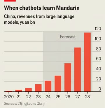 Produção em massa: o chief executive da Baidu, Robin Li, estima que a China esteja produzindo 1 novo LLM por dia. Atualmente existem +100 chatbots com +1Bi parâmetros (como o Llama da Meta).