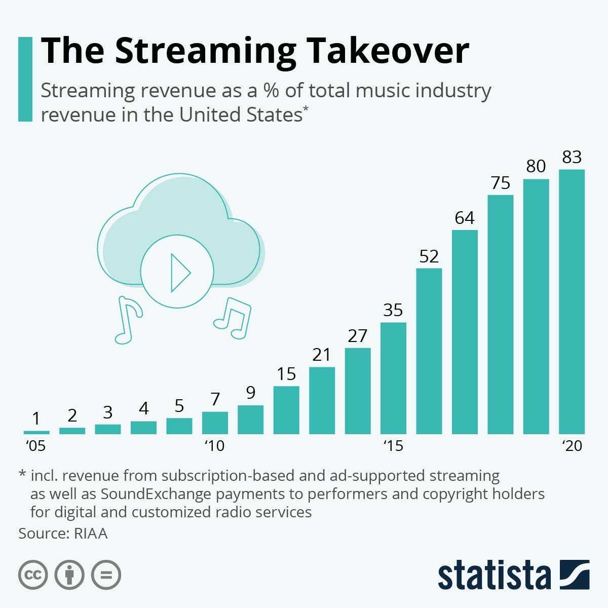 A forma como consumimos músicas mudou, e a forma como a indústria distribui seus ganhos também: detentores dos direitos autorais ganham todas as vezes que as músicas são tocadas. Sendo metade desses plays nas plataformas de streaming e metade nas rádios, shows ou propagandas - o mercado movimenta R$2bi no Brasil e ~U$5.9bi no mundo.