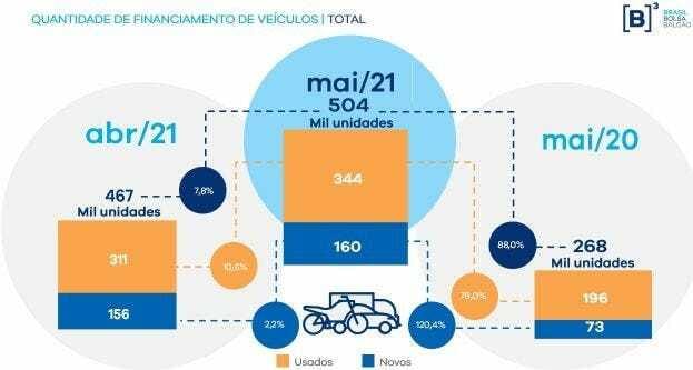 Financiamentos de veículos crescem 88% em maio em comparação com 2020