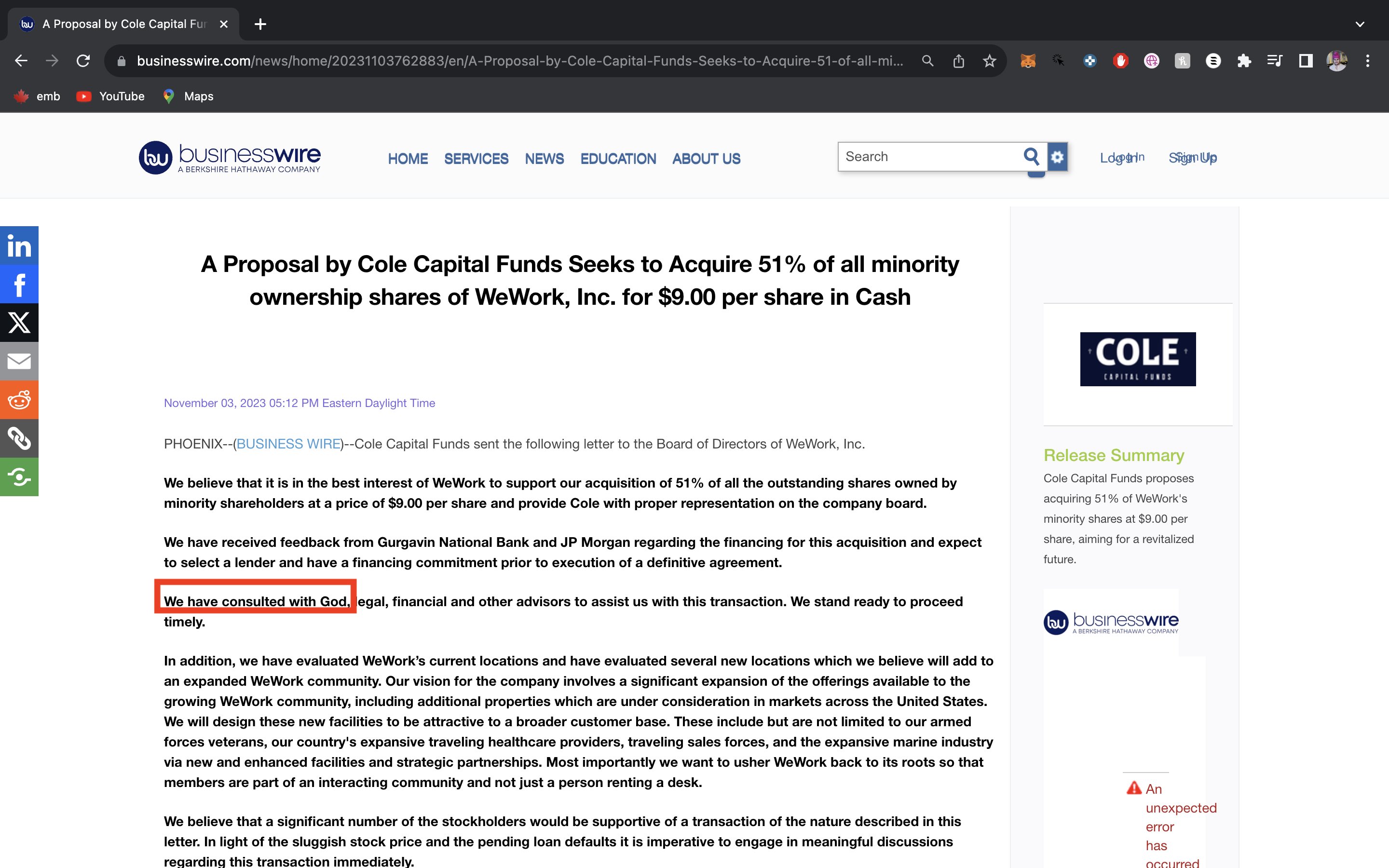 Que o WeWork está em maus lençóis todos já sabem. Na semana passada, ao abrir o pedido de recuperação judicial, uma história fez com que as ações subissem 150% em apenas uma hora.