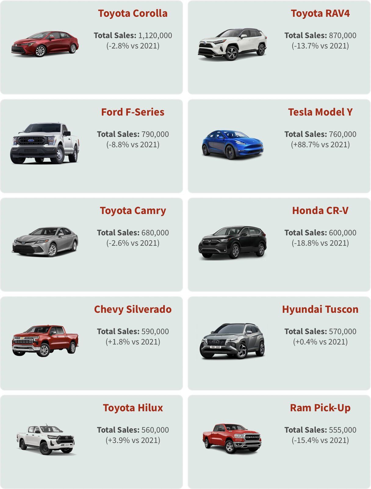 Hoje eu aprendi: que o Modelo Y da Tesla se tornou o carro mais vendido do mundo no primeiro quadrimestre de 2023, com 267.200 unidades - foi também a primeira vez que um carro elétrico assumiu o lugar mais alto do pódio. A posição era antes ocupada pelo Toyota Corolla, que vendeu 256.400.