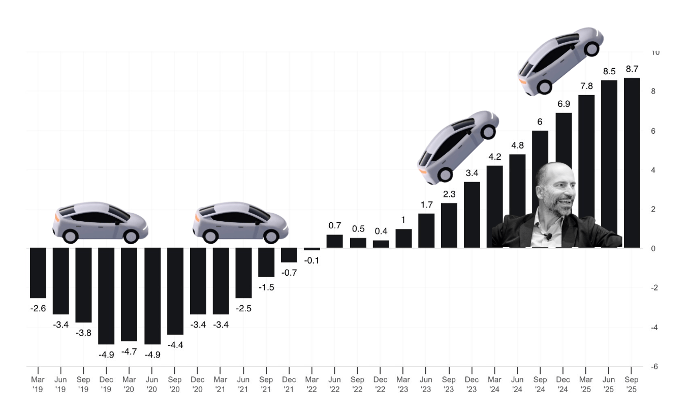 No último trimestre, a empresa comandada por Dara Khosrowshahi superou todas as expectativas: