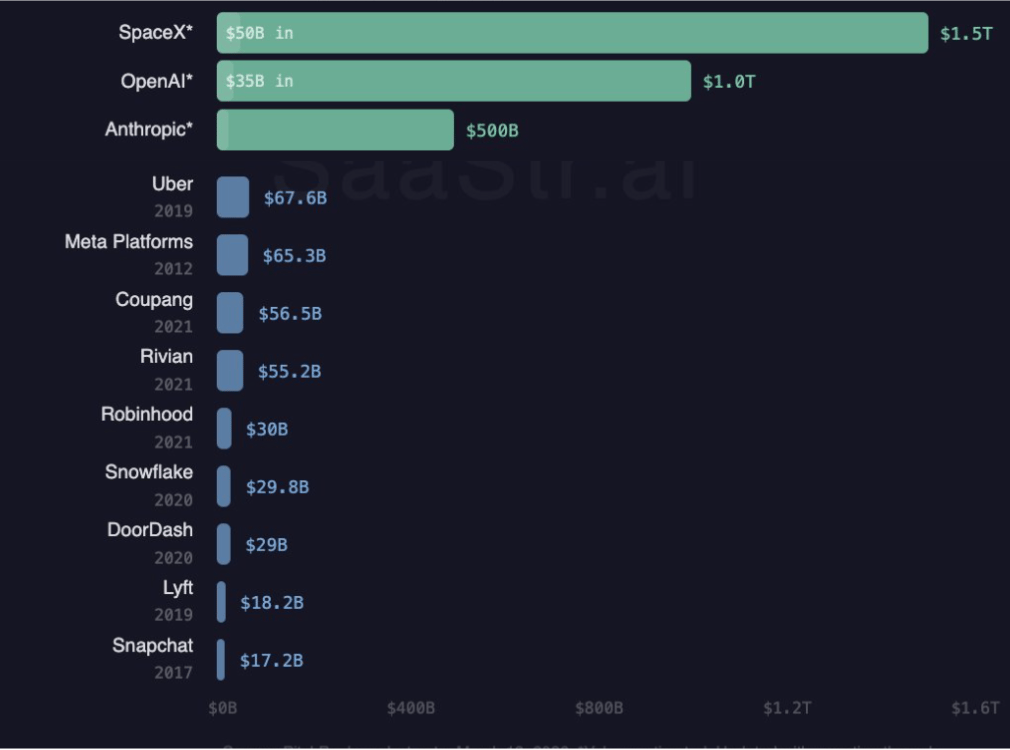 A tamanho do IPO e do valor de mercado da SpaceX, OpenAI e Anthropic