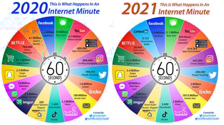 Em 2020, uma pessoa produziu 1.7 MB de dados a cada segundo;