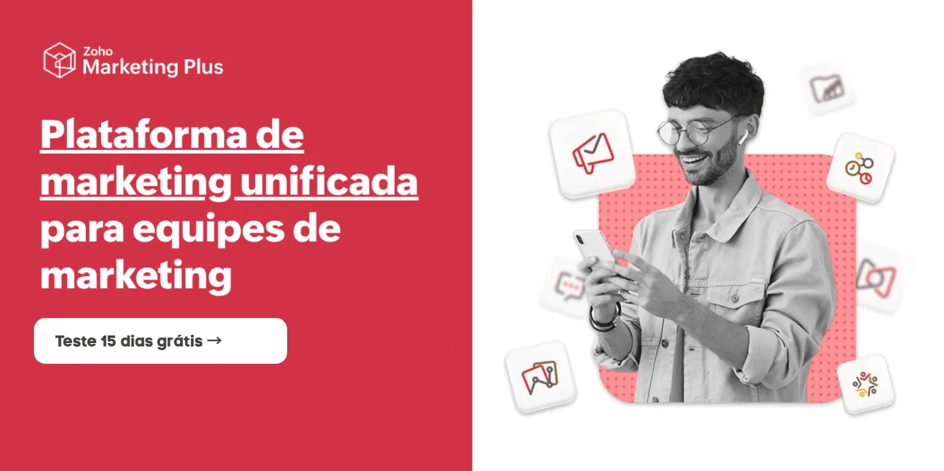 Por um marketing mais unificado. É o que todo marketeiro quer, mas boa parte se perde em várias ferramentas. O Zoho Marketing Plus resolve isso ao reunir e-mail, social, webinars, automação, LPs, WhatsApp, BI, CRO e analytics em um só lugar. Teste grátis por 15 dias clicando aqui.
