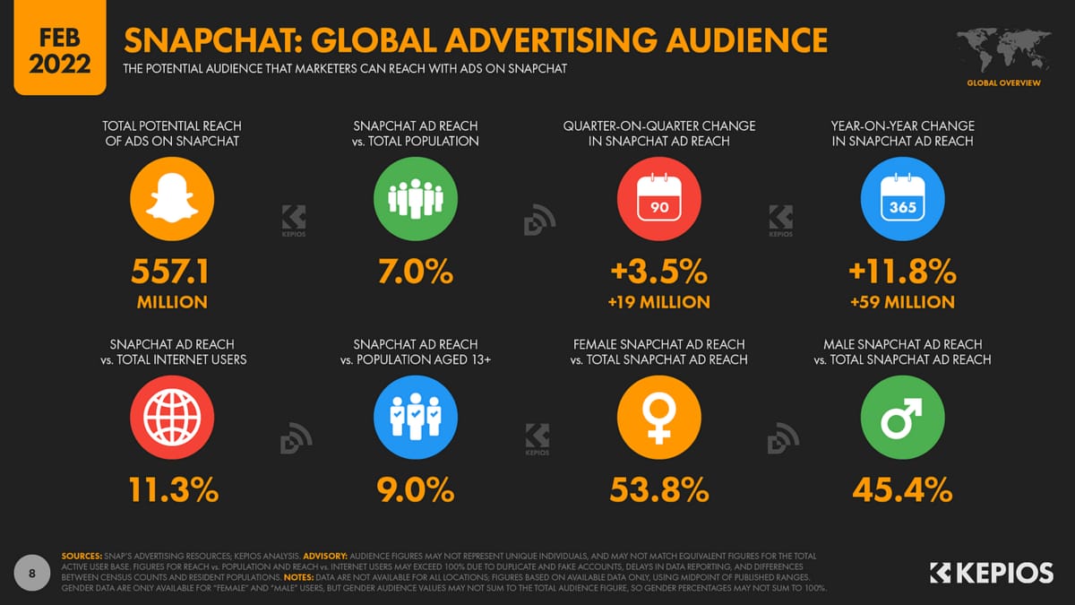 Se você não tem entre 13-24 anos e nem mora nos EUA ou no Reino Unido, chances são de que você passa mais tempo no Insta e TikTok. Por outro lado, entre os jovens americanos e britânicos, o fantasminha amarelo tem 90% de market share!