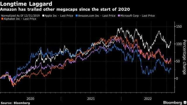 Andy, que ocupa o trono no lugar de Jeff, sentiu bem os efeitos da desaceleração da economia. A divisão de cloud (AWS), teve o menor crescimento por quarter desde 2014, 27.5%, e registrou $1bi a menos do que o esperado pelos analistas. O seu investimento na Rivian, que despencou pós IPO, também não ajudou muito.As ações afundavam ~20% depois da apresentação