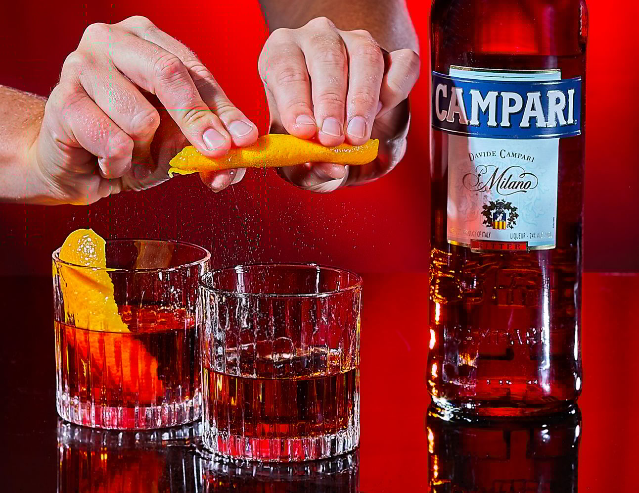 Hoje, com um bar completo no portfólio, o Grupo Campari fornece todos os ingredientes necessários para fazer um Negroni: