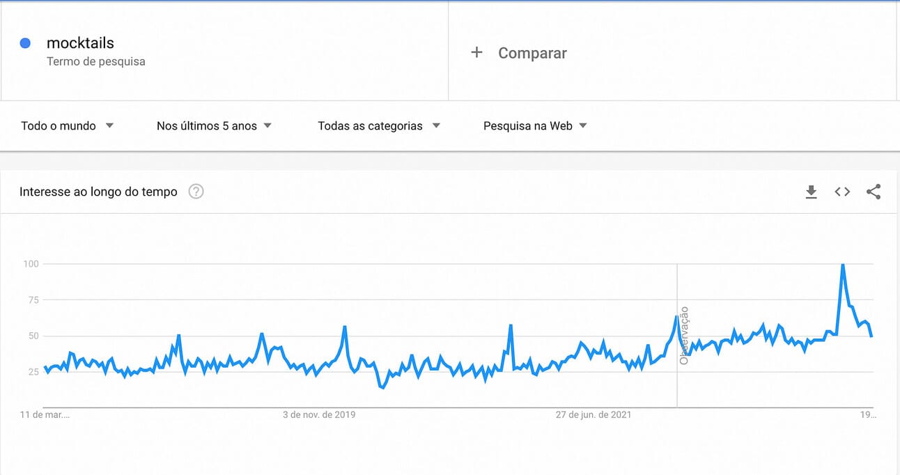 Buscas (mocktails prontos para beber). Já são ~6.5k buscas por mês na Amazon por “mocktails", um crescimento de 38%/mês, segundo a Jungle Scout.